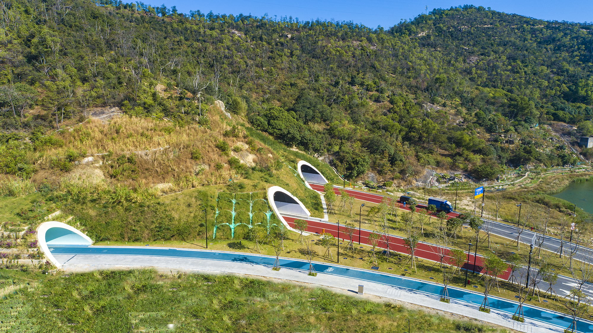 天羽道隧道位于橫琴粵澳深度合作區,穿越小橫琴山,北起環島北路,南至風吹羅帶路,由兩條雙車道車行隧道和一條人非混行隧道組成。天羽道隧道快速連接環島北路和港澳大道,打通了小橫琴山南北兩側的交通網絡,極大提升了國際居住區、天沐河區域與環島北路片區的交通聯系。