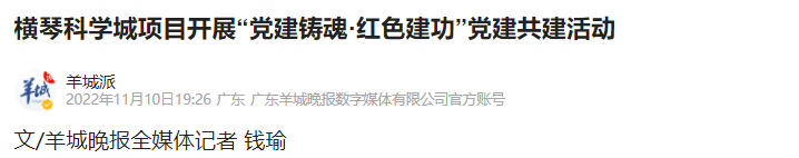 多家媒體關注報道 珠海橫琴科學城項目開展“黨建鑄魂·紅色建功”黨建共建活動