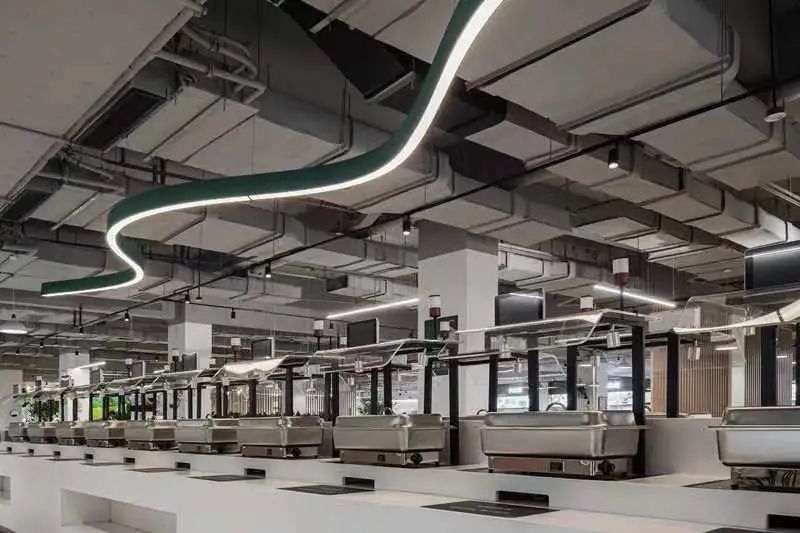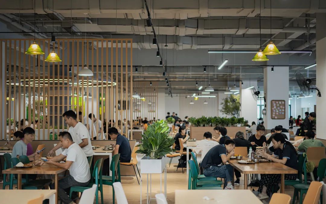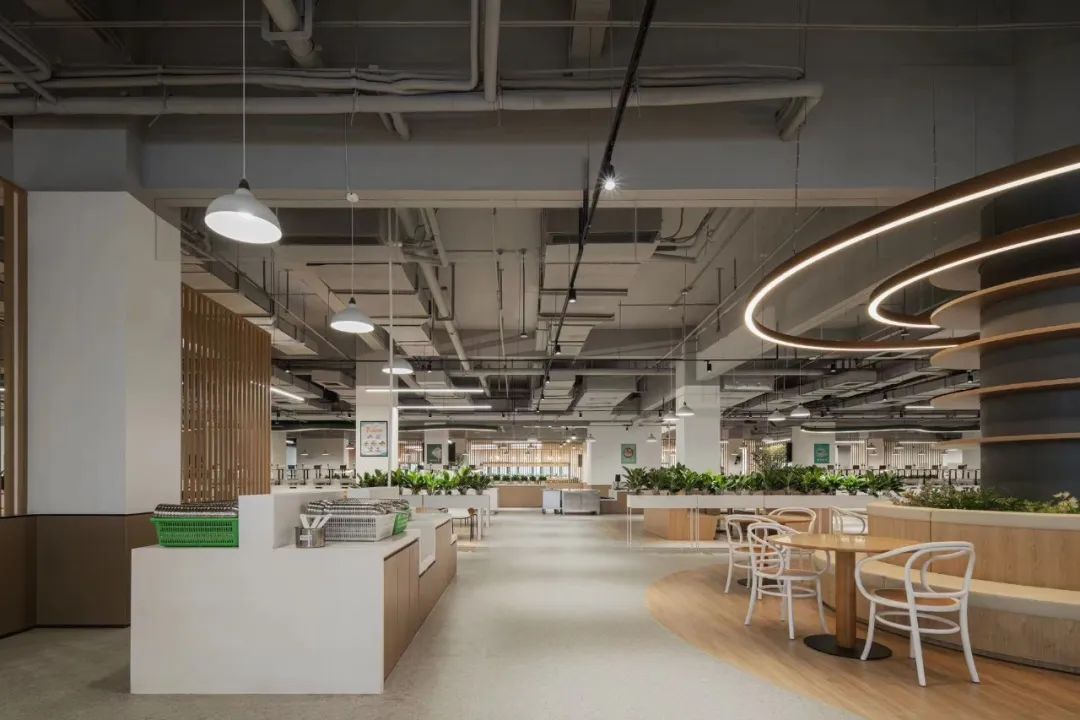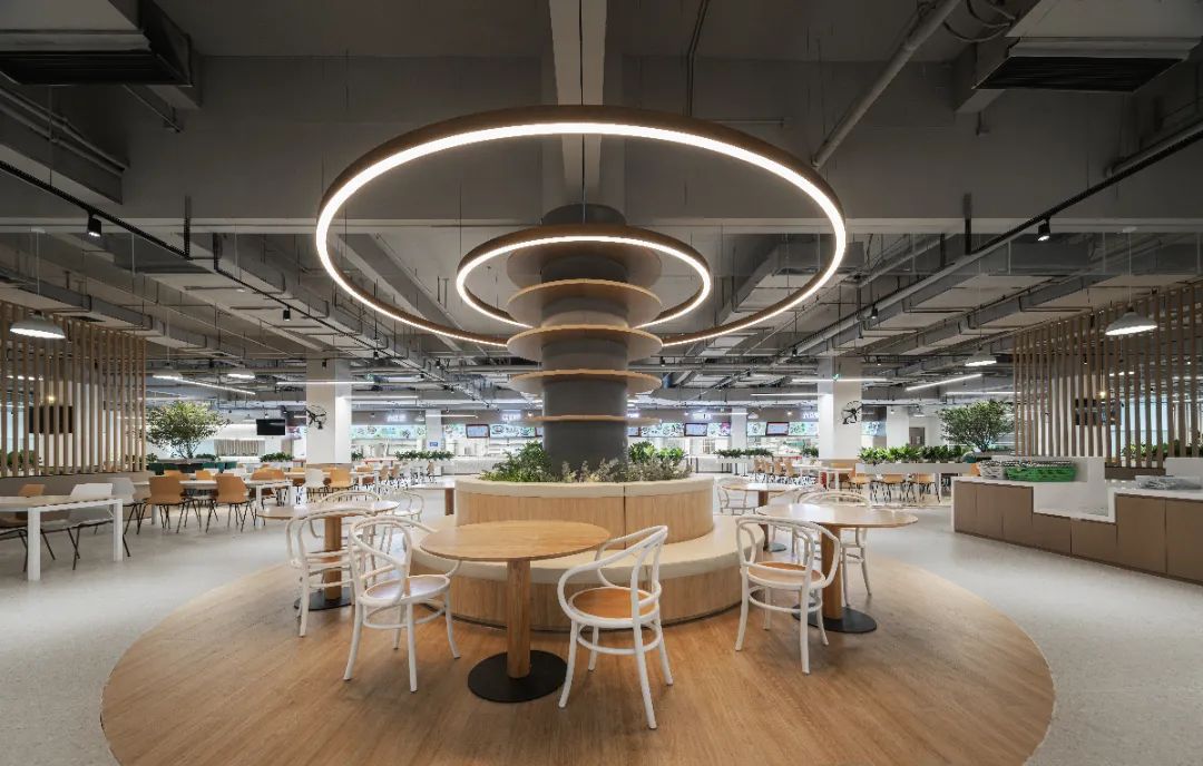 食堂在設(shè)計時,就充分考慮這還是一個社交空間,空間上分割成滿足不同社交需求的空間,靈動多元。