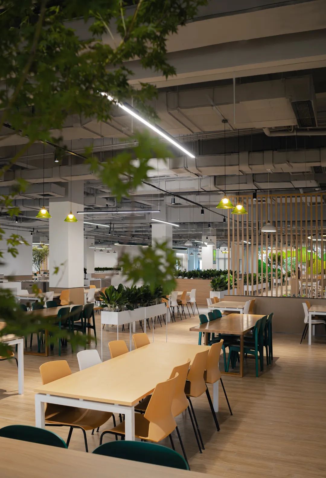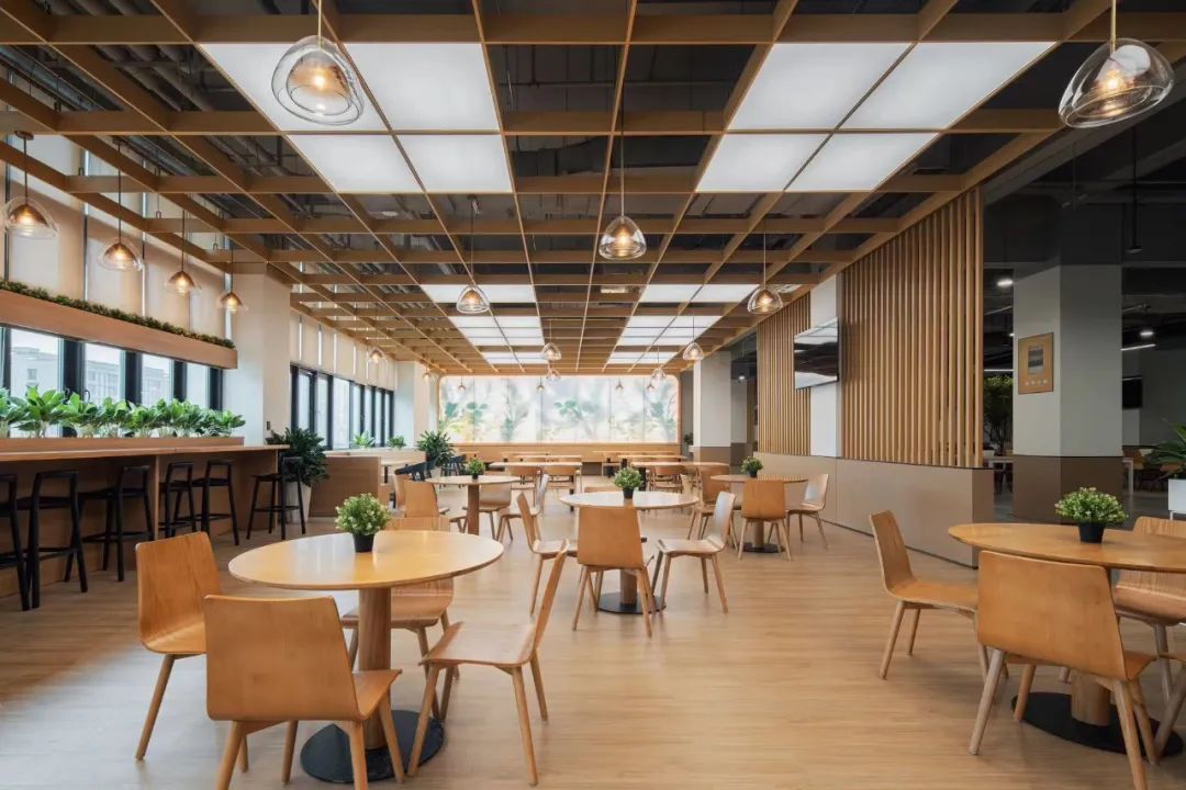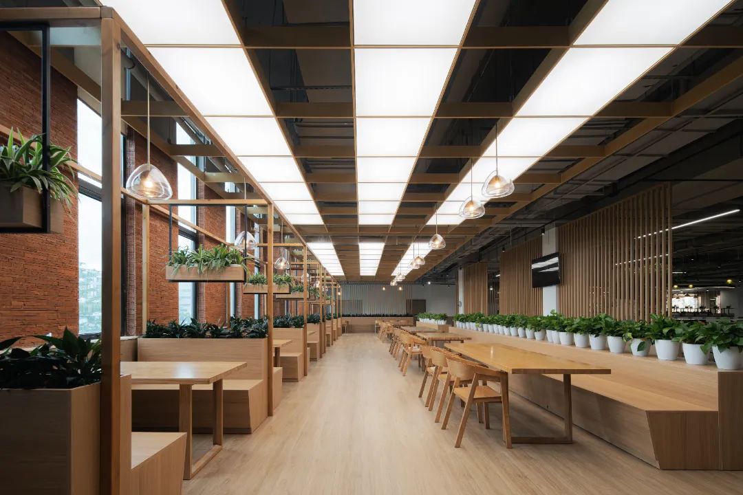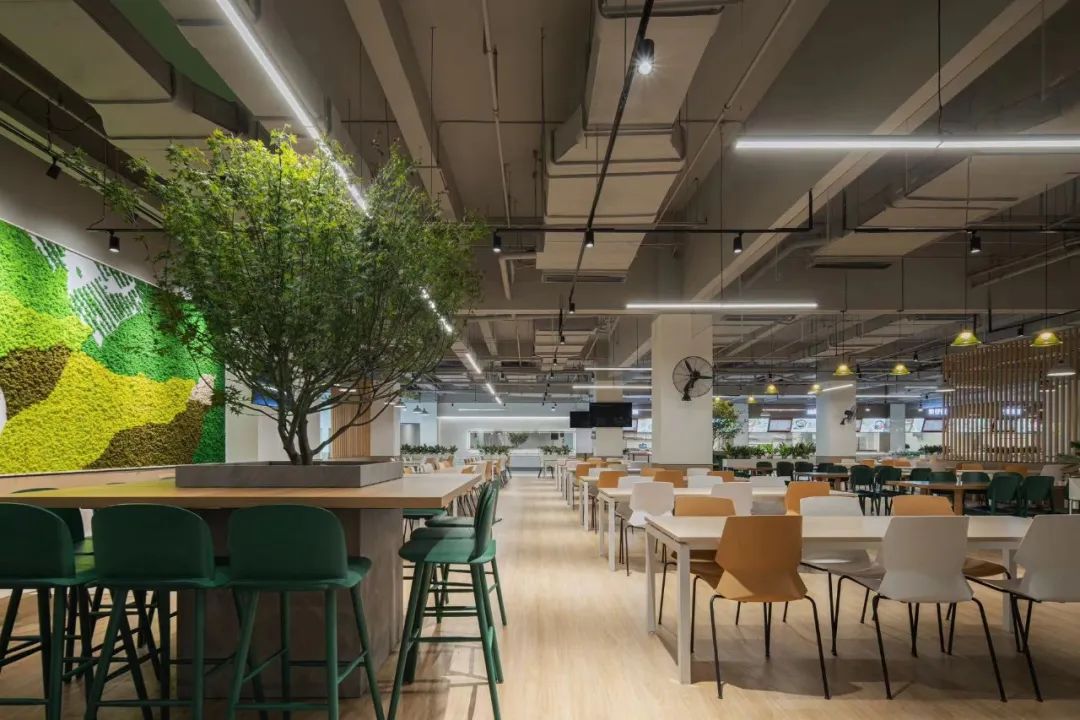 走進(jìn)“廠其林”食堂,仿佛將一片小森林搬了進(jìn)來。