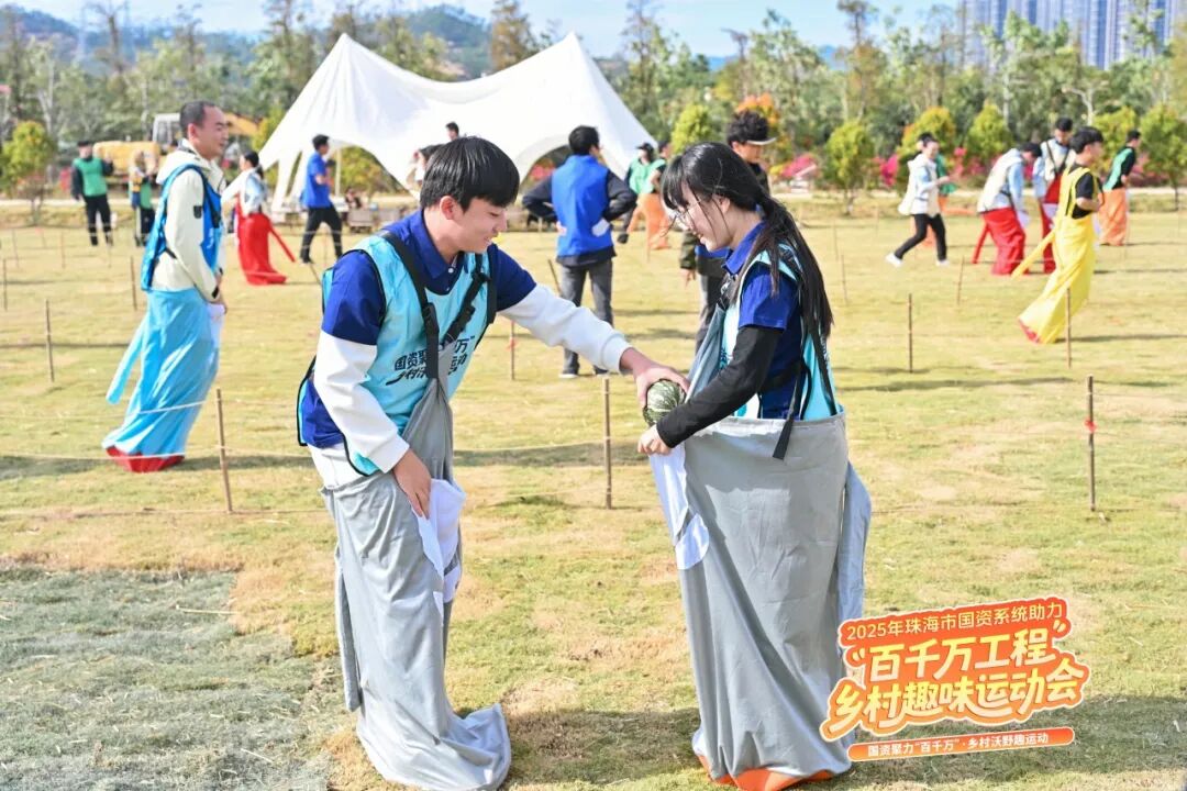 11月21日,由珠海市總工會與珠海市國資委聯合主辦、珠海市珠光集團控股有限公司承辦的珠海市國資系統鄉村趣味運動會在珠光集團斗門世榮草朗生態園火熱上演。來自珠海市總工會及國資系統的10支代表隊,約300名干部職工齊聚田間地頭,以運動為媒,以鄉村為舞臺,展開了一場別開生面、趣味盎然的競技交流,在田園鄉野間完成了一場體力、協作與趣味的綜合較量。